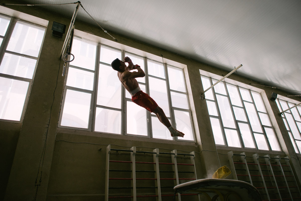 An athlete of the Armenian National Gymnastics Team trains at the vault in Albert Azaryan’s gym in the centre of the Armenian capital Yerevan.