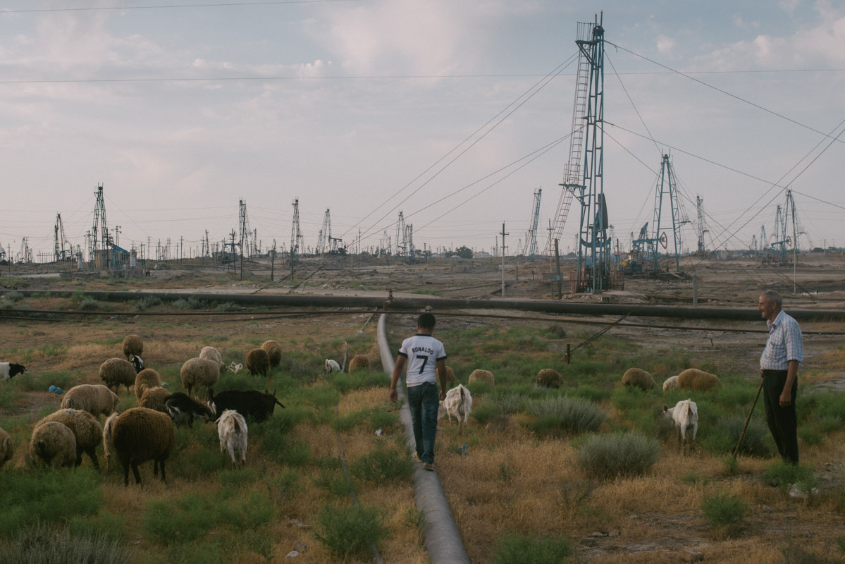 A young shepherd walks on a pipeline in the Balakhani oilfields where the world’s first oil industry was born. From the late 1800s, oil barons such as the Nobel dynasty spilled into the city and by 1900, Azerbaijan became the provider of half the world’s oil. Much of the land belongs now to SOCAR, the state oil company but profits are mostly redistributed among oligarchs, while inequalities are quickly raising.