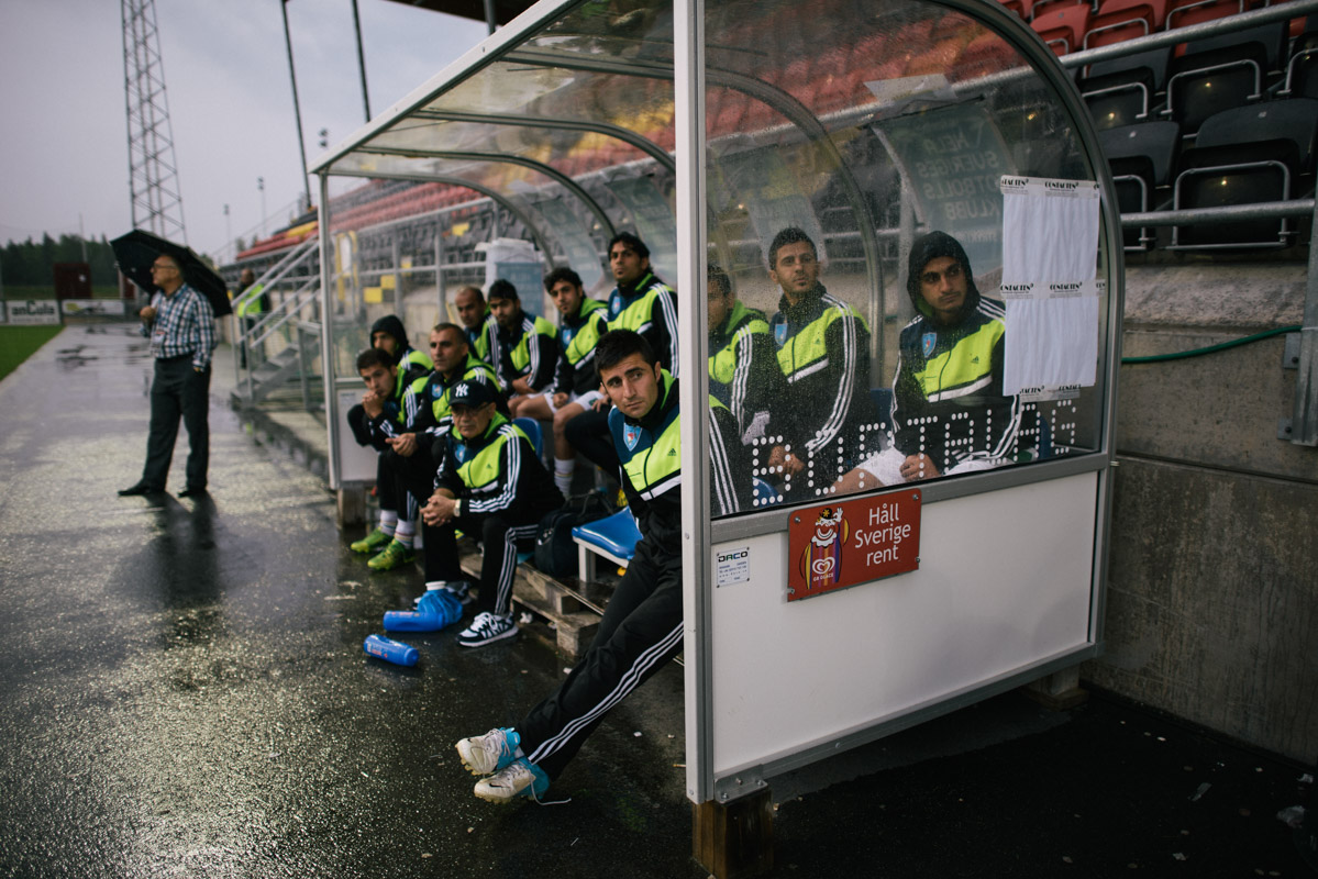 Kurdistan’s bench observes the game against Padania. The land inhabited by Kurdish people spans between Iraq, Turkey, Iran and Syria. While Padania players are mostly amateurs, the Kurdish players come from professional leagues.